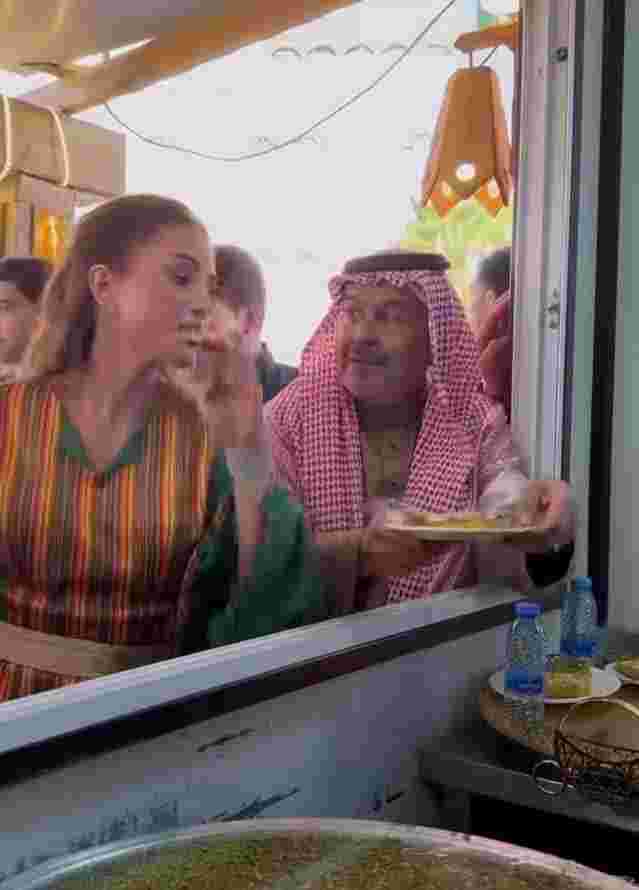 جلالة الملكة رانيا العبدالله تتجول في شوارع معان وتدخل أحد محلات بيع الحلويات في المدينة لشراء الهريسه ..
