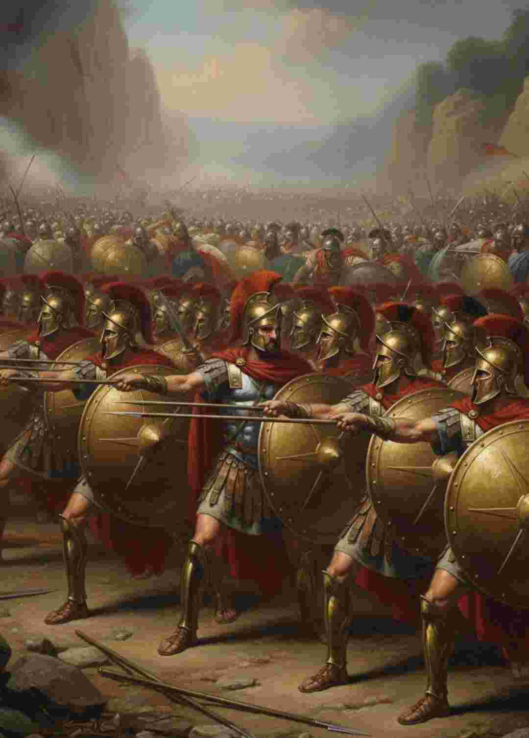• في عام 480 ق.م، واجهت اليونان خطرًا هائلًا: جيش الفرس بقيادة الملك خشايارشا، بأعداد قدرت بمئات الآلاف. في ممر ضيق يُدعى تيرموبيلاي، وقف الملك ليونايداس مع 300 من محاربي سبارطا، مدعومين ببضع آلاف من الحلفاء اليونانيين.