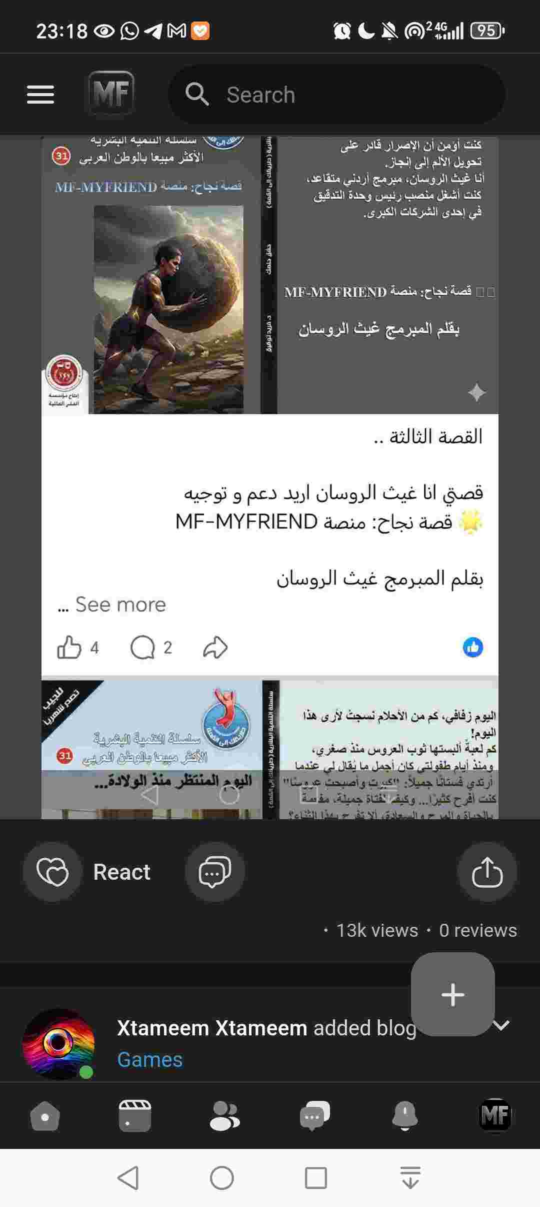 🌟 قصة نجاح: منصة MF-MYFRIEND بقلم المبرمج غيث الروسان في وقتٍ كانت فيه الحياة تختبر صبري وقوتي، كنت أؤمن أن الإصرار قادر على تحويل الألم إلى إنجاز. أنا غيث الروسان، مبرمج أردني متقاعد، كنت أشغل منصب رئيس وحدة التدقيق في إحدى الشركات الكبرى. لكن بعد سنوات من العمل، وجدت نفسي في معركة غير متكافئة: مرض السرطان في مرحلته الرابعة، والشركة الكبرى امتنعت عن دفع مستحقاتي المالية. الكثير ظنّ أن تلك هي النهاية… لكنها كانت البداية. على مدى ست سنوات من الصبر والعمل المتواصل، بدأت ببناء مشروع حلمي: منصة MF-MYFRIEND، شبكة تواصل اجتماعي عربية تعتمد على مبدأ “الإنسان أولًا”، وتكافئ المستخدمين على نشاطهم بعملة رقمية حقيقية (MF Coin). واجهت حربًا من الجميع، ومحاولات لإيقافي، لكنني آمنت أن من يعمل بإخلاص لا يُهزم. اليوم، وبعد سنوات من الكفاح، أصبحت المنصة تعمل بنجاح، وتجاوز عدد مستخدميها 100,000 مستخدم فعّال، مع أكثر من 15,000 زيارة يوميًا من مختلف دول العالم. هذه المنصة لم تكن مجرد كود أو فكرة، بل كانت رسالة أمل لكل من فقد طريقه، ودليلًا أن المرض لا يهزم الإرادة، والظروف لا توقف الحلم. أنا غيث الروسان، لم أستسلم… وصنعت من الألم منصة تجمع الناس بالأمل. 💙 --- 🌟 Success Story: MF-MYFRIEND Platform By Programmer: Gaith Al-Rousan At a time when life tested my patience and strength, I believed that determination could turn pain into achievement. My name is Gaith Al-Rousan, a Jordanian programmer and a retired Head of the Internal Audit Unit at a major company. After years of hard work, I suddenly found myself in an unfair battle — stage four cancer, and the major company refused to pay my financial dues. Many thought that was the end… but for me, it was the beginning. Over six years of patience, learning, and relentless effort, I built my dream project: MF-MYFRIEND, an Arabic social networking platform that puts people first and rewards users for their activity with a real digital currency — the MF Coin. I faced opposition and challenges from every side, but I held onto my belief that true dedication cannot be defeated. Today, after years of perseverance, the platform is alive and thriving, with over 100,000 active users and more than 15,000 daily visits from around the world. This platform is not just a system or a line of code — It’s a message of hope, A living proof that illness cannot defeat the will, and hardship cannot stop a dream. I am Gaith Al-Rousan — I did not give up, I turned pain into purpose, And built a platform that connects people with hope. 💙